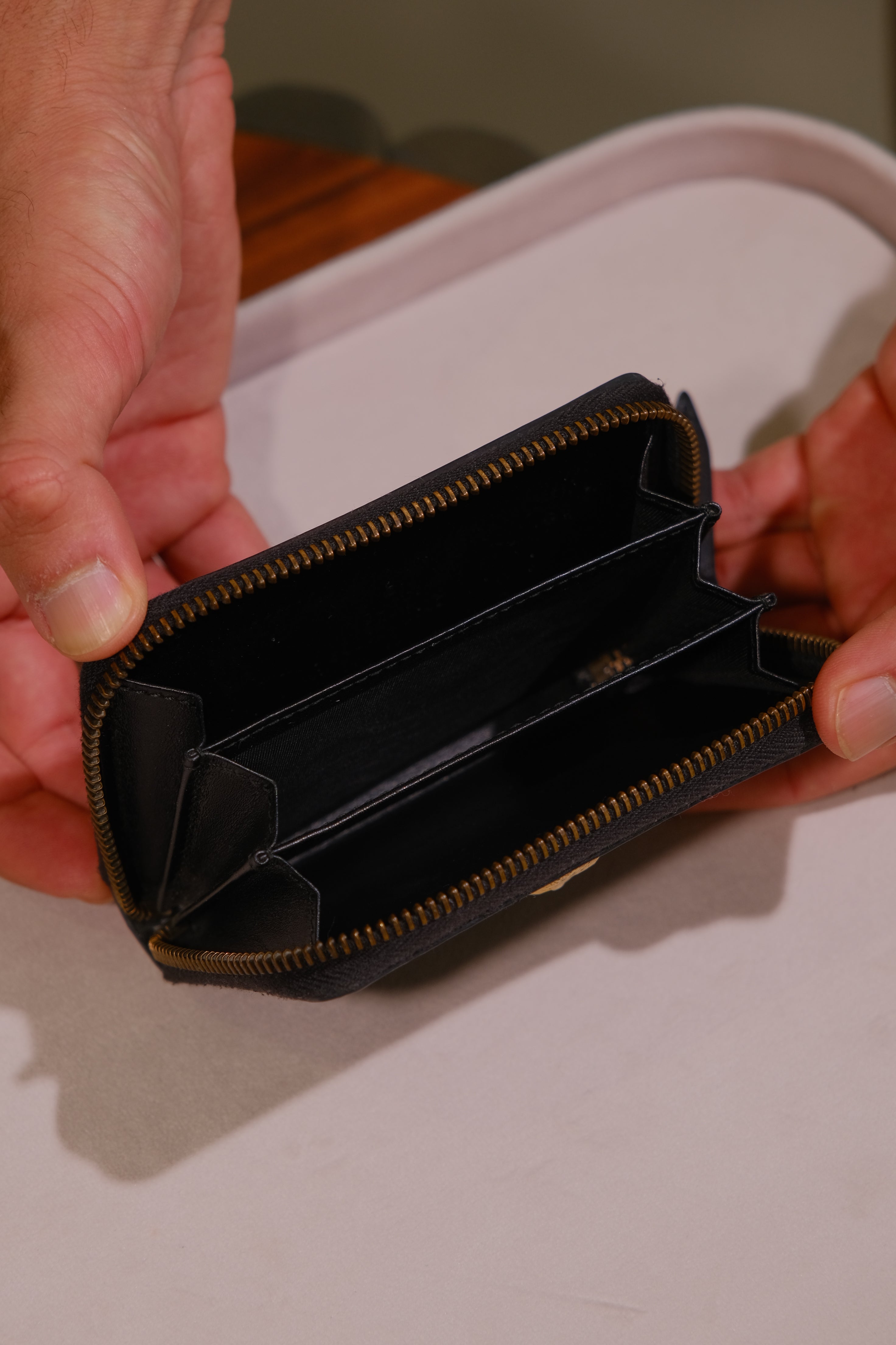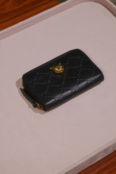 Carteira Gucci Guccissima, em couro na cor preta com detalhes em GG, compartimento com divisória, ferragem em dourado e zíper na parte superio.