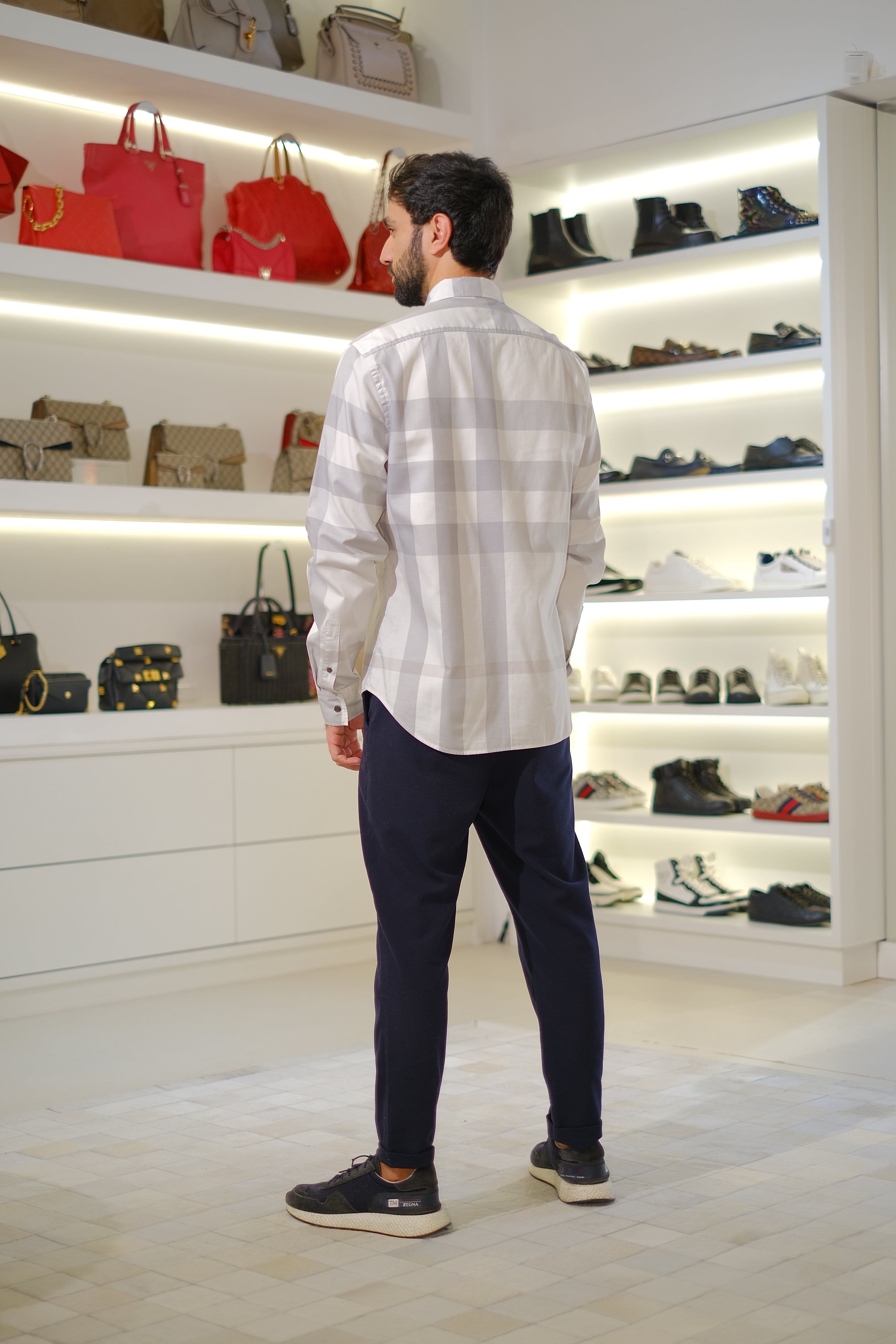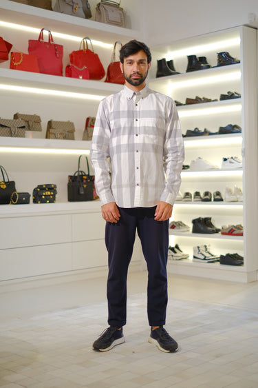 Camisa Burberry, em xadrez na cor cinza e branco. Tamanho G