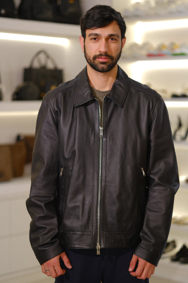 Jaqueta de Couro Hugo Boss, em couro na cor preta e ferragem em prata. Tamanho 52