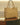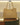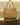 Bolsa de estilo tote feita em couro bege, alça de ombro fixa, ferragem dourada, fechamento por imã e interior com dois bolsos (um aberto e outro fechado por cursor).