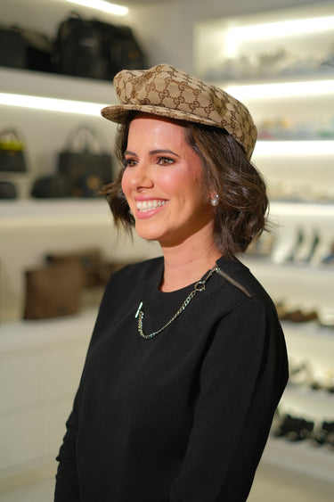 Boina Gucci, em monograma, veste tamanho M e tem 58 cm.