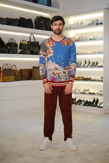 Blusa Dolce&Gabbana, na cor azul com estampas. Tamanho M